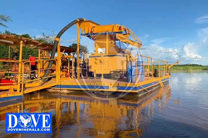Continuous recovery of alluvial minerals directly from active riverbeds using floating platforms or dredge-mounted processing plants. These systems eliminate the need for divers, increase safety, and provide non-stop extraction with integrated concentration processes.